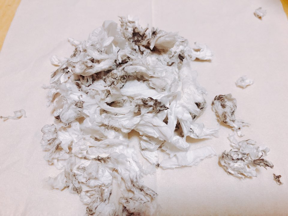 그리고 팬은 휴지를 찢어 구석구석 닦았네요.