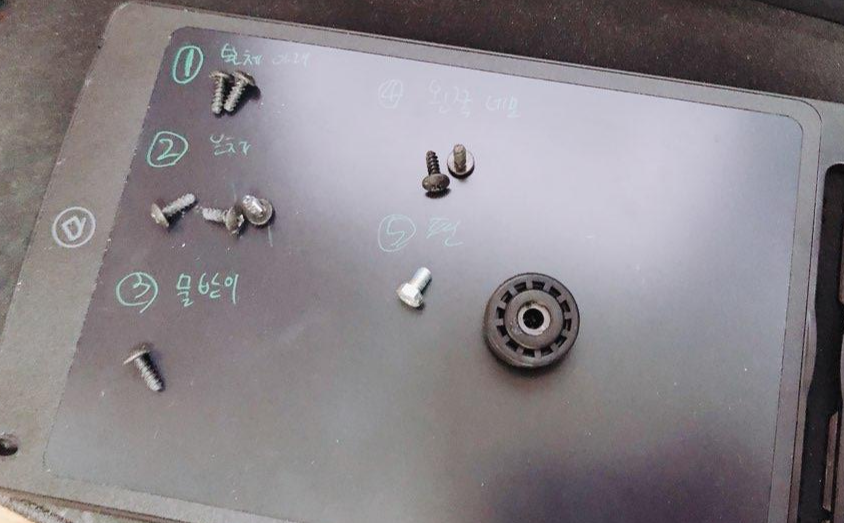 참고로 저는 나사를 분리하는대로 아래와 같이 순서대로 기억을 했답니다.