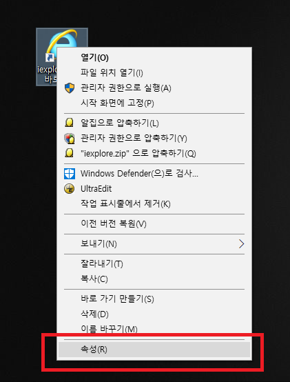 3. 만들어진 바로가기 파일에 속성정보를 엽니다.