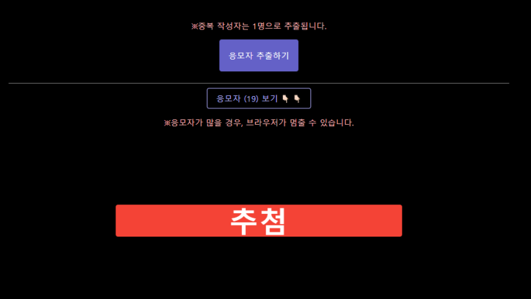 두 번째로 '댓글 랜덤 추첨' 버튼을 눌러보면,