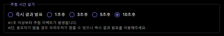 3. 추첨 시간 넣기 - 추첨하는 시간을 설정하여 조금이라도 쫄깃한 효과가 생기도록 시간을 설정할 수 있다.