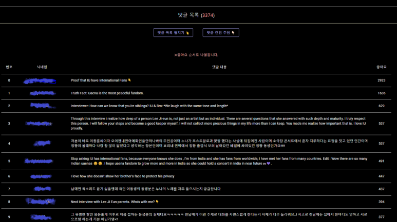 우선 '댓글 목록 펼치기'버튼을 누르면 사진과 같이