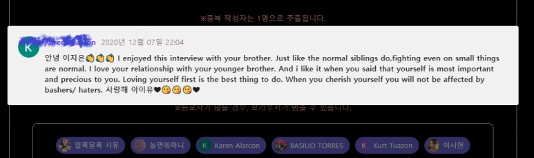 해당 응모자를 클릭해보니, 실제 작성했던 댓글을 볼 수 있었다.