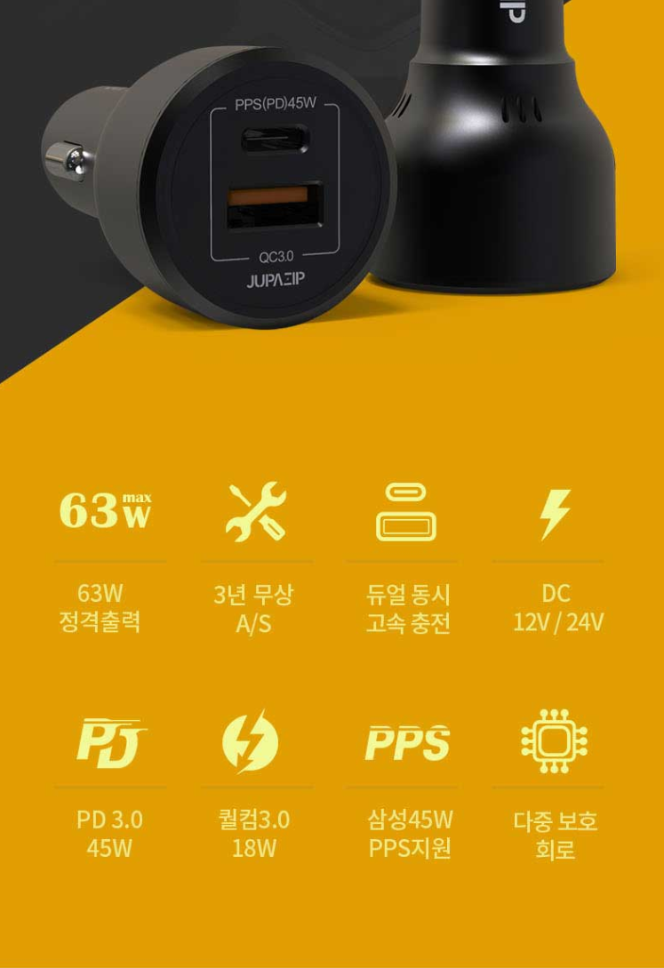 주파집 63W USB / PD 타입 PPS 차량용 초고속충전기 CC01 : JUPAZIP