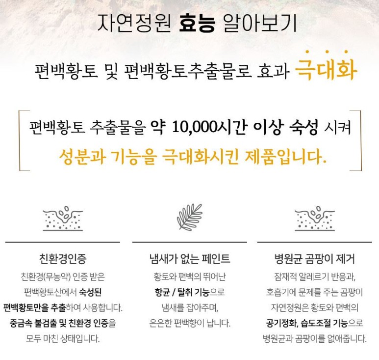 친황경으로 인증된 편백 황토로 만든 페인트..