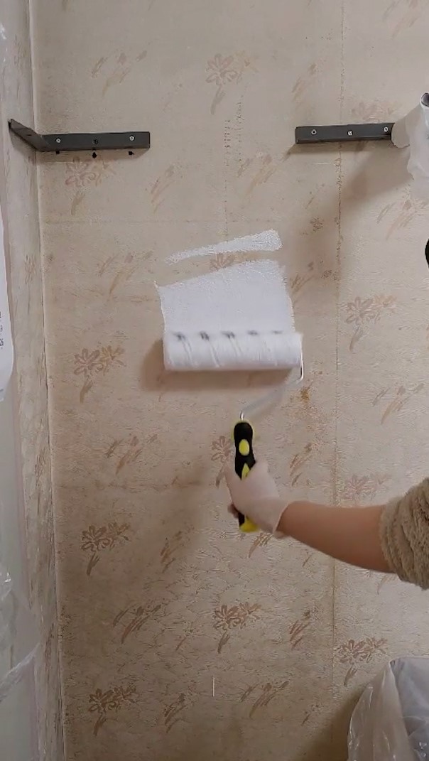 벽지에 페인트 바르기 첫 시작