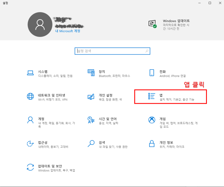 설정창이 열렸다면 '앱'을 클릭해주세요.
