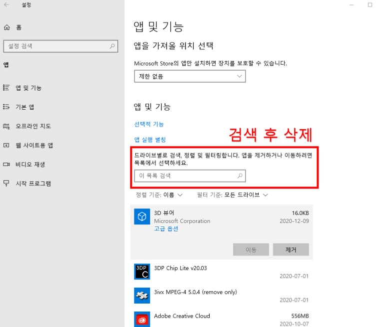 그럼 이제 지우고 싶은 프로그램을