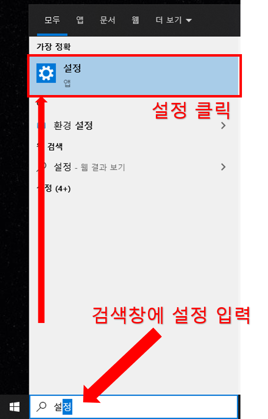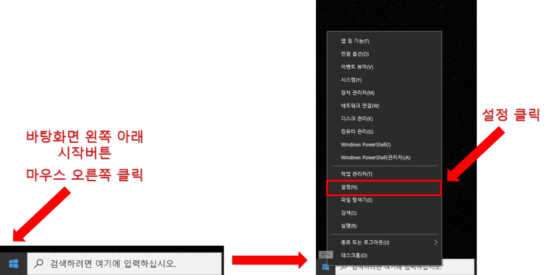 윈도우 10의 설정을 열어주는 것이 첫 번째 목표입니다.!