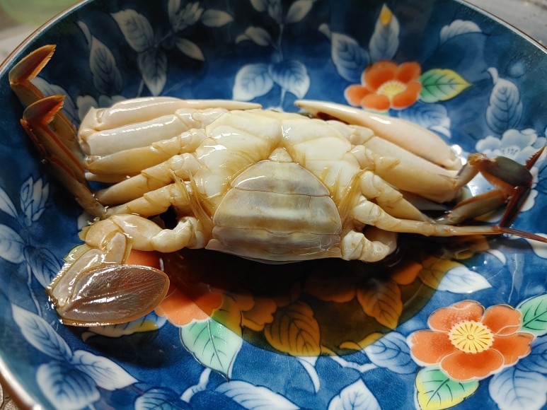 꽃게를 그릇에 놓고