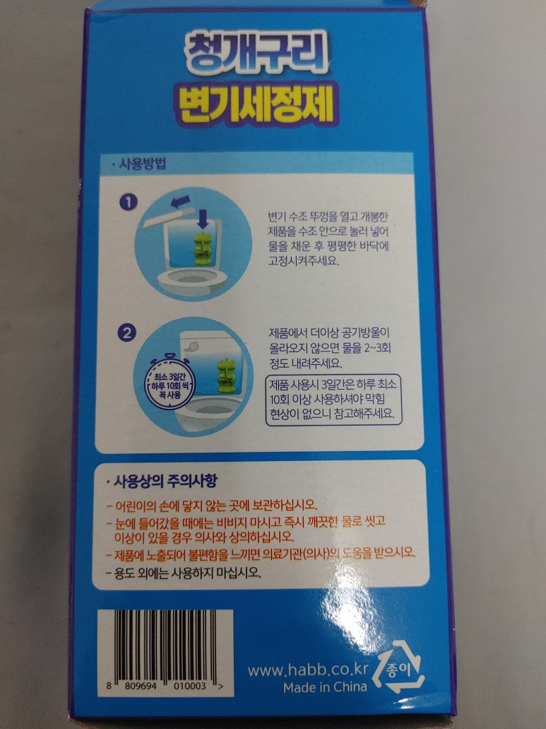 설명서 대로 변기 물 2~3번을 내렸는데도
