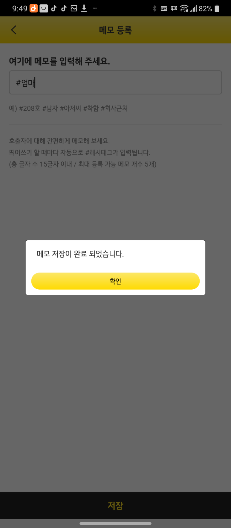 메모한 상대로부터 전화가 오면 위와 같이 표시가 되었다.
