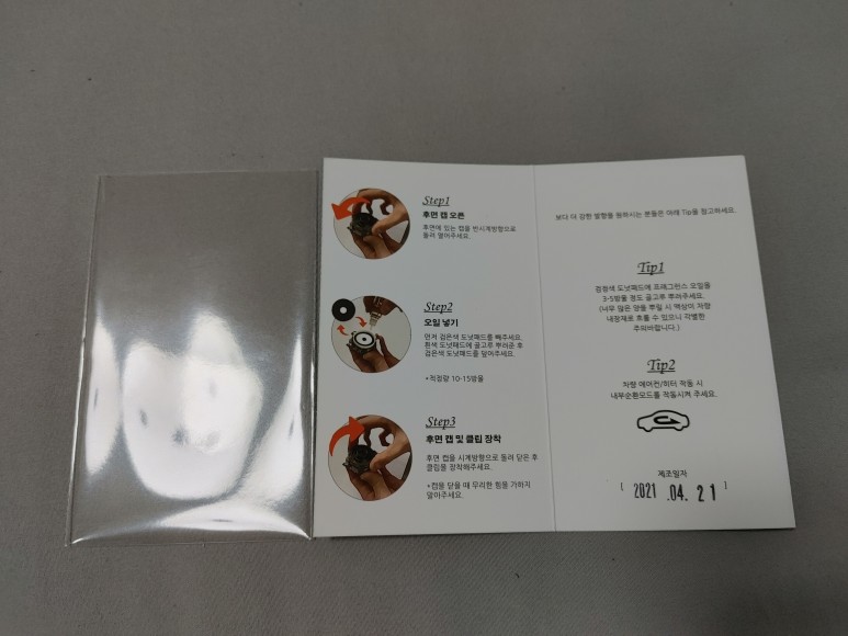흰색에 향을 묻히는 것이고, 오른쪽은 여분으로 더 주는 솜.
