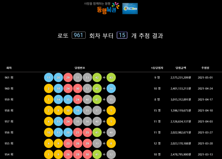 저도 로또 번호를 뽑을 때 자주 활용하는 곳인데,