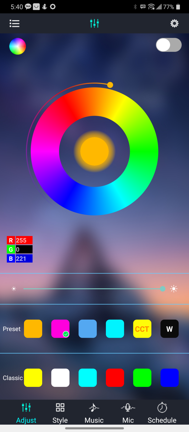 색 지정은 물론, 밝기에다가