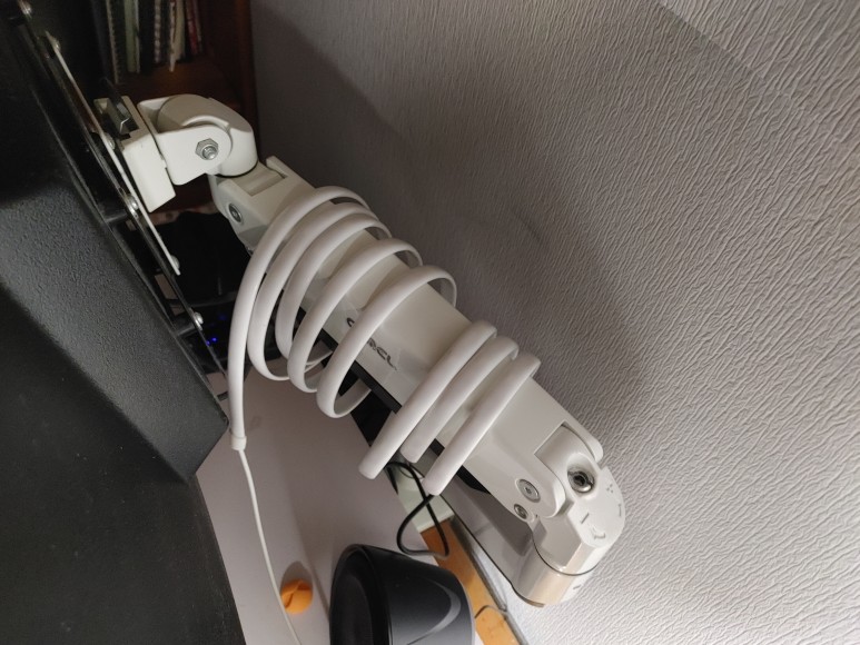 뒤에 모니터 앞에다가 돌돌돌 말아주었어요.