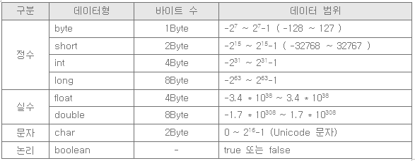 정수, 실수, 문자, 문자열 등
