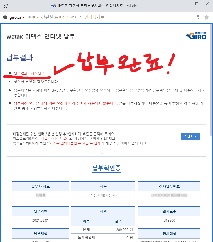 *만약 납부번호를 모른다면, 자동차 명의 정보로 로그인해야 하고 공인인증서가 필요할 것이다.