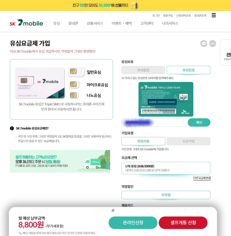 그중에서도 딱 내가 원하는 이벤트를 하고 있는 sk 7모바일 업체를 사용하기로 했다.