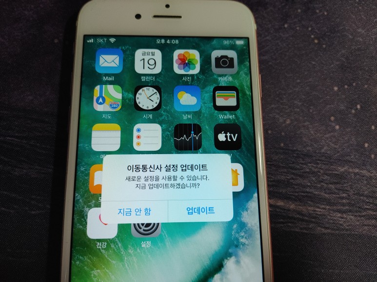 기우자 마자 자동으로 이동통신사 업데이트가 뜨더니
